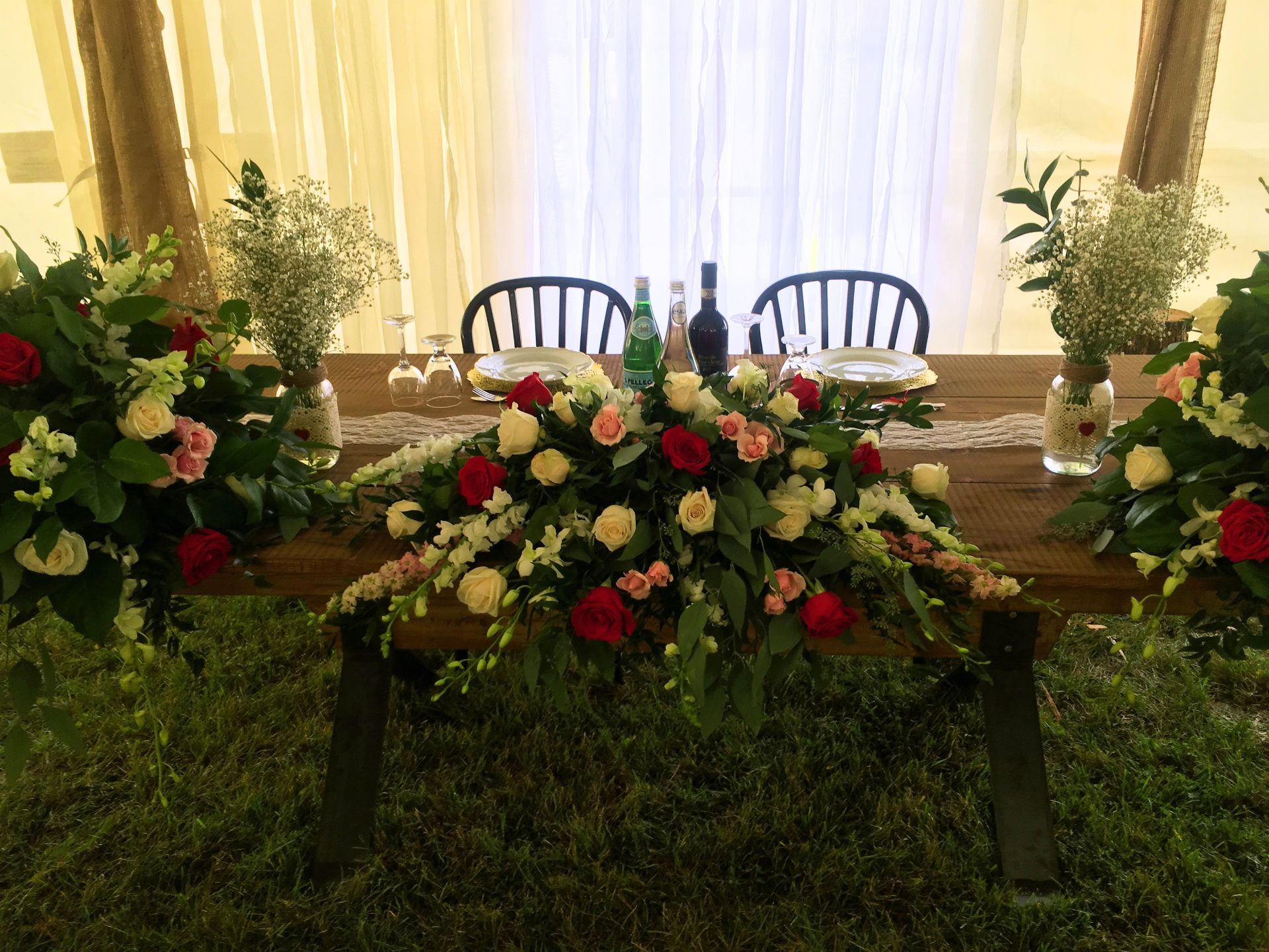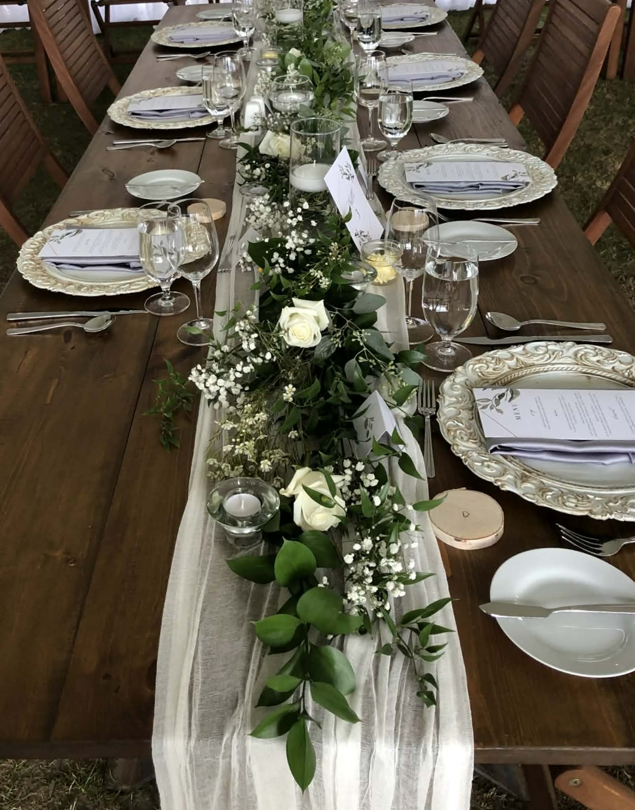 ⭐ Comes with beautiful wooden tables and chairs, traditional arch and huge bonfire for the special evening